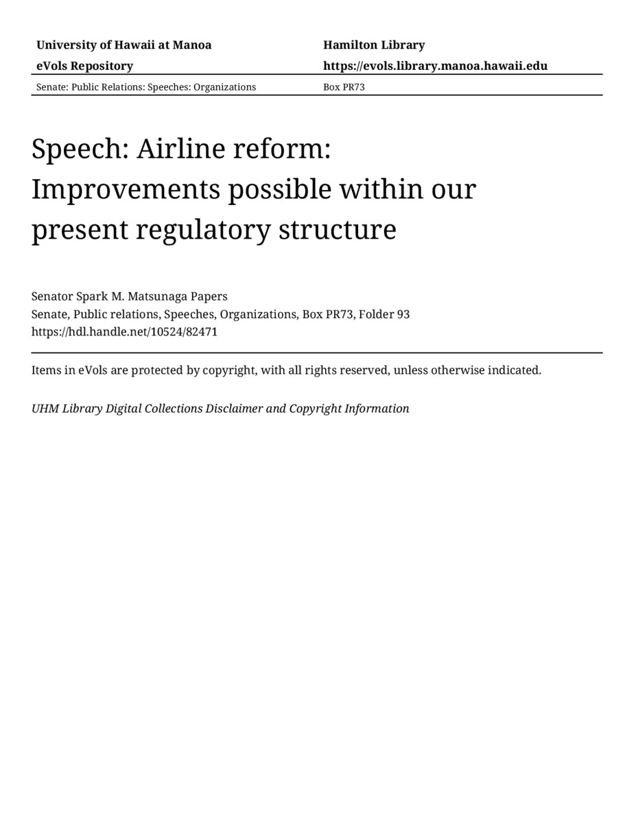 - Speech: Airline reform: Improvements possible within our present regulatory structure