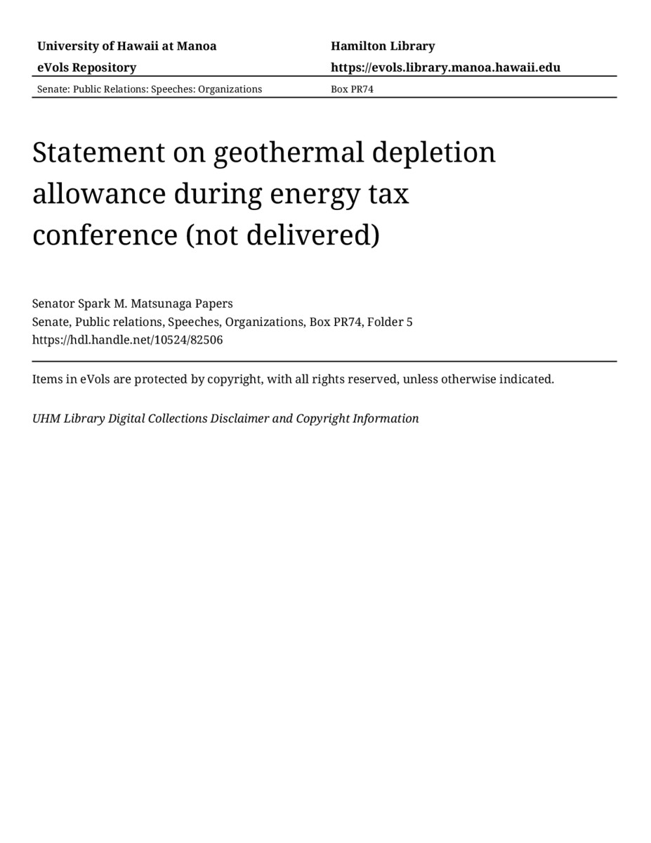 - Statement on geothermal depletion allowance during energy tax conference (not delivered)