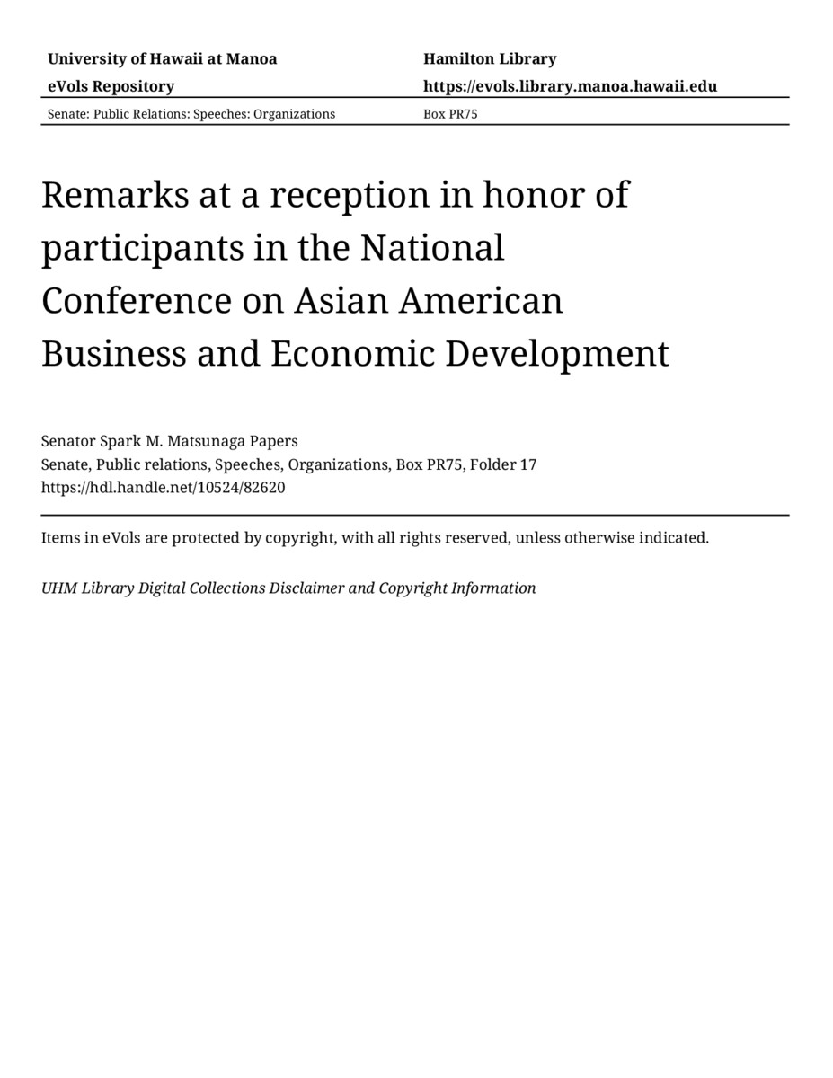 - Remarks at a reception in honor of participants in the National Conference on Asian American Business and Economic Development