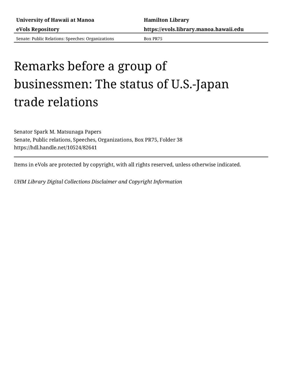 - Remarks before a group of businessmen: The status of U.S.-Japan trade relations