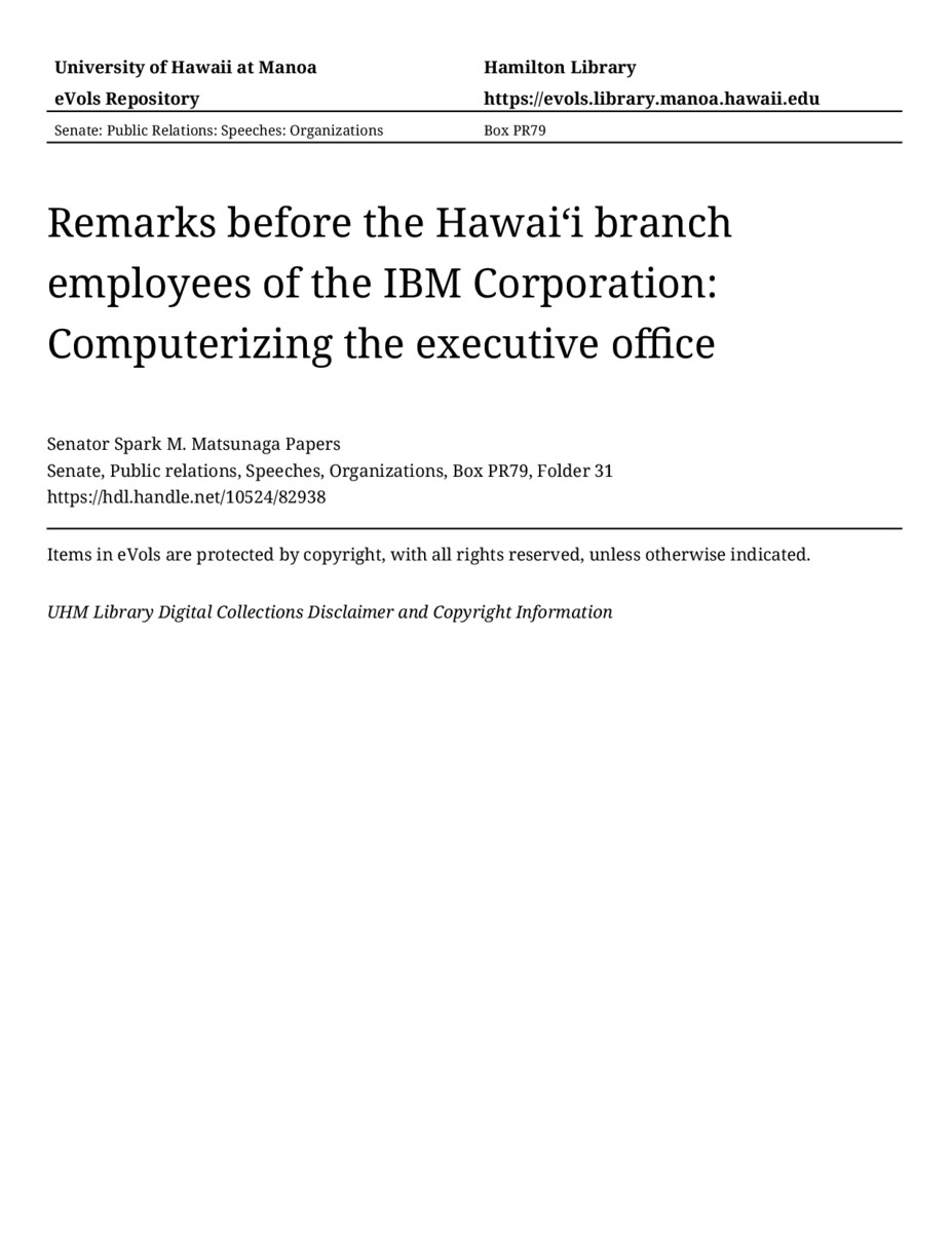 - Remarks before the Hawaiʻi branch employees of the IBM Corporation: Computerizing the executive office