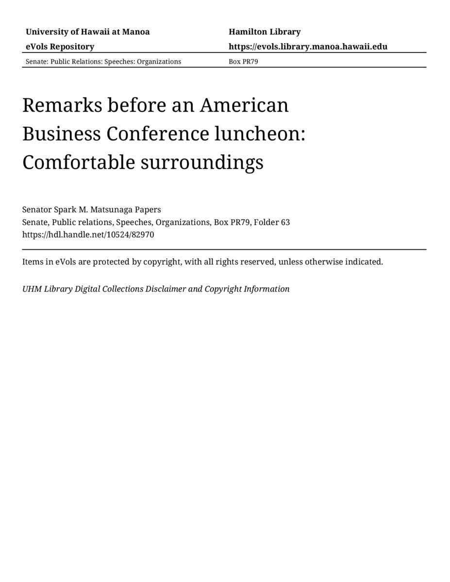 - Remarks before an American Business Conference luncheon: Comfortable surroundings